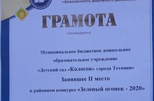 Каждый год появляются новые изменения в законодательстве о безопасности дорожного движения. Поэтому педагоги всеми способами пытаются привлечь внимание родителей к самой насущной для ребенка потребности - потребности в безопасности жизнедеятельности, осознанию опасности, которую несет городская среда и сформированности необходимых навыков безопасного поведения на дороге, как в качестве пешехода, так и пассажира. В связи с этим в нашем ДОУ ведется большая работа по активизации деятельности по обучению детей правилам безопасного поведения на дорогах и профилактика дорожно – транспортного травматизма. Опыт нашей работы был представлен на районный конкурс «Зеленый огонек – 2020», где наш детский сад занял II место. Мы поздравляем коллектив ДОУ и желаем дальнейших творческих успехов!