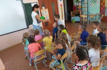 В рамках недели безопасности в средней -старшей группе прошла беседа «Ситуации на дороге». В ходе беседы, ребята вспомнили правила дорожного движения, обсудили опасные ситуации на улицах города. В гости к детям пришёл расстроенный Мишка. Он опоздал на последний рейс автобуса и не смог попасть к другу на день рождения. Ребята решили сами сделать для Мишки автобусы. -