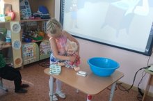 Почему от мальчика убежали все вещи ? С такого вопроса началась беседа в средней- старшей группе о правилах личной гигиене. В гости к детям пришла девочка чумазая, которая думала, что на солнышке загорела. Ребята научили девочку правильно умываться, и вместе с детьми она посмотрела мультфильм о микробах. Дети сделали вывод, что нужно мыть руки перед едой обязательно с мылом, почаще мыть игрушки, убираться в помещении. В игре «Чего не стало» дети закрепили предметы личной гигиены. А чтобы девочка не забыла правила гигиены, ребята решили нарисовать предметы, которые помогают ухаживать за своим телом, содержать его в чистоте. -