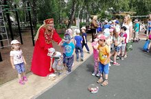 Стало доброй традицией ежегодно отмечать День рождения А.С.Пушкина. Этот год не стал исключением. Сегодня дети старшей-подготовительной группы стали участниками праздника, который организовали для ребят сотрудники детской библиотеки в Центральном городском парке. Организаторы праздника, предложили детям вспомнить сказки великого классика, отгадать загадки (отрывки их разнообразных произведений), ребята приняли участие в разнообразных играх – соревнованиях: «Поймай золотую рыбку», «Отгадай сказку», и др. В гости к ребятам "наведался" и сам Александр Сергеевич, которому в этом году исполняется 220 – лет со дня рождения. Праздник прошел незабываемо красочно и ярко. В конце мероприятия ребят напоили чаем с баранками. -