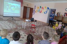 Сегодня наш детский сад посетили особенные гости: начальник Буинского отделения отдела профилактики ТУ г. Казани ГБУ «Безопасность дорожного движения» Сергудаева Анна Вячеславовна, которая провела беседу с детьми средней старшей группы о том, что велосипед - это транспортное средство, и для езды на велосипеде есть свои правила безопасности. Дети посмотрели мультфильм, из которого узнали что перед началом движения, нужно проверить тормоз, звонок, руль и сиденье, если необходимо подкачать шины, нужно подобрать одежду, удобную и безопасную для катания на велосипеде. А для того, чтобы не было аварийных происшествий на дорогах существуют дорожные знаки, предназначенные для велосипедистов.