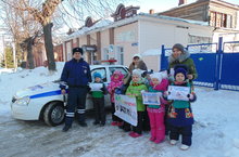 9 февраля дети подготовительной группы вместе со старшим воспитателем Абрамовой Е.А. и воспитателем Чахиревой Е.А. совместно с сотрудниками отдела ГИБДД провели акцию под названием: «Осторожно, дети!».
