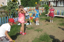 5 августа в детском саду прошло игровое мероприятие "Әй уйныйбыз, уйныйбыз". (Играйте, играйте). Все дети с большим удовольствиемприняли участие в татарских народных играх и эстафетах. А свою силу и ловкость воспитанники показали в состязаниях "Кул көрәте" (сила рук), "Аркан тартыш" (перетягивание каната), "Капчык сугышы" (бой мешками). Каждый ребенок выбирал себе достойных соперников, показал умение и ловкость. Праздник закончился веселыми татарскими песнями.