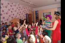 19 марта во второй младшей группе был проведен физкультурный досуг. Дети играли в сказку, в которой происходили разные волшебные превращения. Они превратились в гномиков и отправились в лес на «Волшебную полянку», а в пути их застал дождик, затемгномики пришли к болоту, где жили весёлые лягушки, там дети поиграли в п/и «Лягушки и журавль» и после многих приключений они нашли чудесные цветы, а затем с фонариками вернулись домой.