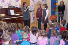 11 декабря 2013 года педагог музыкальной школы Кузнецова Л.П. с вокальным ансамблем «Росинка» провели с воспитанниками нашего детского сада музыкальную беседу на тему: «Путешествие в Мультляндию». Малыши угадывали музыку из любимых мультиков, совместно с педагогом исполняли песни таких композиторов как: В. Шаинский, А. Рыбников, Б. Богатырев, Е.Крылов, Г.Гладков. В подарок детям девочки из ансамбля подарили песни из мультфильма «Маша и медведь».