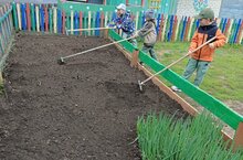 Сегодня воспитанники и сотрудники детского сада дружно вышли на очередной субботник. Была убрана прилегающая и закрепленная территория, вскопаны грядки. Детям показали как правильно подготовить почву в посадке растений: копать и рыхлить землю, делать грядки.
