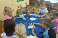 В преддверии праздника в старшей- подготовительной группе, воспитатели провели тематические беседы. Воспитанники познакомились с историей возникновения русского флота, узнали о морских профессиях. Ребята, конструировали корабли, у них получилась целая флотилия. Дети с большим удовольствием играли в сюжетно-ролевую игру «Корабли на страже морских рубежей».