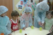 Сегодня в нашем детском саду был проведен «День опытов и экспериментов». В гостях у дошкольников побывали профессор Всезнайкин, доктор Умелкин и доцент Почемучкин. Которые рассказали детям, что такое лаборатория, о правилах поведения в ней и для чего ученые проводят опыты и эксперименты. Во время экспериментирования воспитанники проявляли интерес к происходящему, повторили и познакомились с некоторыми свойствами воздуха и воды, научились проводить несложные опыты, рассуждать, анализировать, делать выводы и объяснять «чудеса» с научной точки зрения. Ребята были в восторге…