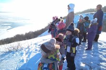 В рамках "Месячника безопасности на водных объектах" в детском саду проходит цикл мероприятий, направленных на безопасное поведение во время ледостава. Сегодня воспитанники старшей - подготовительной группы были на экскурсии у берега р. Волги. Воспитатель Васина Е.А. рассказала детям о полынье, которая образуется на тонком льду. Воспитанники закрепили правила поведения на тонком льду. Был сделан вывод: "Запрещено в данную погоду выходить на лед!"