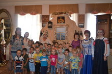 Сегодня в рамках недели "Мой родной и любимый край" воспитанники средней, старшей и подготовительной групп посетили городской музей. Сотрудники музея приветливо встретили ребят и провели интересную и увлекательную экскурсию. Сначала ребят встретили бабушка Устинья с внучкой Аленкой, они рассказали детям про старинные предметы домашнего обихода и любезно продемонстрировали их: это и лопата для печи, и кочерга, а так же ухват, старинные чугунные утюги. Аленка показала детям старинную женскую и мужскую одежду, плетеные лапти, деревянную обувь (колодки), в которых ходили люди в давние времена. Многие ребята даже примерили эту тяжелую и неудобную обувь на себе. В следующем зале дети посетили Чайную, где их вниманию было представлено большое количество разнообразных самоваров и рассказали о их устройстве и о том как в старину пили чай. Увлекательное путешествие закончилось угощением: бабушка Устинья и внучка Аленка угостили детей вкусным компотом из ягод.