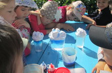 Сегодня в нашем детском саду стартовала «Неделя интересных дел» и началась она с увлекательных опытов и экспериментов. Для детей занимательные опыты и эксперименты — это что-то магическое, непонятное и интересное. Ребята старшей-подготовительной группы под руководством педагога Хайрутдиновой Л.Ф. наблюдали за извержением вулкана, за домашним дождиком из пены для бритья и красителей, а также за раскрывающимися в воде бумажными цветами. Ребята сами принимали непосредственное участие во всех опытах и чувствовали себя при этом настоящими волшебниками.