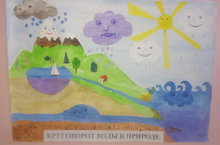 Сегодня руководитель экологического кружка «Капитошка» Л.Д. Гарнизова провела беседу с детьми старшей-подготовительной группы на тему: «Вода - это жизнь"». Итогом беседы стала коллективная работа: картина с элементами аппликации «Круговорот воды в природе».