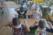 Дети старшей группы "Любознайки" закрепили знания о средствах индивидуальной защиты во время эвакуации из задымленного помещения. Ребята потренировались в быстром надевании ватно - марлевых повязок и верхней одежды при эвакуации из помещения.
