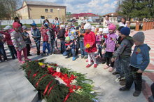 В канун праздника воспитанники средней, старшей, подготовительной, логопедической групп совершили целевую прогулку к площади Монумента Славы. Дети послушали рассказ воспитателей о страшной войне, о воинах, защищавших нашу страну, и возложили цветы к Вечному огню.