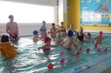 После веселой конкурсной программы девчонки и мальчишки отправились в детский бассейн.