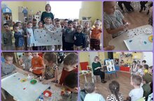 " Крепыши" была проведена беседа «Военные профессии». В ходе беседы дети узнали, как много профессий в армии, что каждая военная профессия почетная и важная. Все военные готовы в любой момент защищать мирное население. Также прочитали рассказ про дружбу " Мишин колосок", рассматривали иллюстрации по теме, отгадывали загадки о военной технике, о разных родах войск, и выполнили коллективную работу "МЫ ЗА МИР..." -
