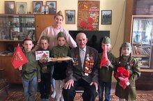9 мая вся наша страна отмечает Великий праздник – День Победы в Великой Отечественной войне 1941-1945 годов. Ребята подготовительной группы изготовили открытку Ветерану Великой Отечественной войны Авдонину Ивану Николаевичу, а повара испекли вкусный пирог. Ветеран рассказал ребятам о своих боевых подвигах, о своих наградах, сослуживцах. Дети с трепетом слушали Ивана Николаевича, задавали вопросы.