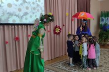 После прошедшего дождя цветы с клумбы унесло сильным ветром, и ребята помогали Фее Цветов посадить их на свои места. Также дети играли в игру "Найди свой цветок" и танцевали танец цветов. Вот такое цветочное настроение