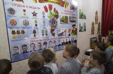 В рамках Месячника гражданско-патриотического воспитания ребята старшей группы 2 побывали музее детского сада . Вместе с воспитателем Майоровой И. В. дети рассматривали медали и ордена на стенде "Мы помним,мы гордимся". Ребята узнали, за что могли получить ордена и медали солдаты, командиры, города-герои? Все люди хранят память о ВОв. Везде установлены памятники, мемориалы в честь погибших.