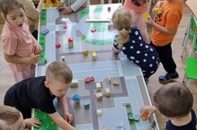 Маленький человек видит окружающий мир с высоты своего роста. Сегодня ребятам второй младшей группы "Затейники" предоставилась возможность посмотреть на актуальную тему БДД немного "свысока". Большой интерес у них вызвала игра с макетом, где можно было увидеть, как выглядят проезжие части, пешеходные переходы, перекрёстки сверху. Конечно же, в процессе игры, были повторены основные правила безопасного дорожного движения.