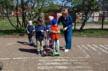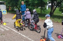 Ребята освоившие двух- и четырехколесные велосипеды показали свои умения юных велосипедистов. Они проехали один круг вокруг детского сада. Аварий и нарушений правил дорожного движения выявлено не было.