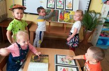 Этот день посвятили теме «Грибы». Они посмотрели мультфильм «Для чего грибы в лесу?», отгадывали загадки с использованием макета «На лесной поляне», поиграли в музыкальную игру «Ищи, грибок» и изготовили аппликацию. -