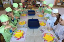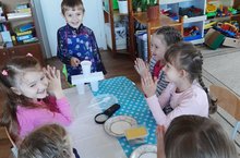 Беренче кечкенәләр төркемендә " Тылсымлы ком»дәресе узды. Саф һавада балалар ком үзлекләрен тикшерделәр, нинди комны чәчәргә мөмкин булуын билгеләделәр, ә куличикларның кайсысыннан ясарга мөмкин булуын билгеләделәр. Балалар бик теләп экспериментлар үткәрделәр һәм хәтта юеш комда кәгазь битендәге кебек рәсем ясарга мөмкин булуын билгеләделәр.