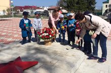 Логопед төркеме балалары тәрбиячеләр белән берлектә Дан һәйкәле янында Мәңгелек ут янына чәчәкләр салдылар, үз гомерләрен Җиңү хакына биргән солдатларны искә алдылар.