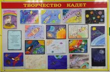 По итогам декады Гагарина в школе была оформлена выставка рисунков. 17.04.2026