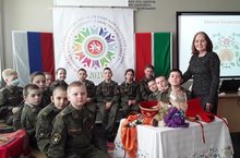 В Тетюшской кадетской школе –интернате продолжается проведение мероприятий, посвященных Году родного языка и народного единства. Сегодня Нафиса Равиловна с кадетами 5 класса в игровой форме провела урок родной литературы. Ребята знакомились с настоящими женскими головными уборами и имели возможность померить татарский калфак, русский кокошник, мордовское панго, чувашскую тухью. Ребята на разных языках читали стихи, короткие рассказы о национальных головных уборах и вместе сыграли в татарские народные игры. Кадетам особенно понравились такие музыкальные игры, как «Түбәтәй», «Йөзек салыш».