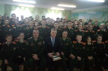 12 февраля воспитанники 5 класса ( воспитатель Костин С.Г.) приняли участие в мероприятии «Афганская война – живая память», посвященном 30-летию вывода советских войск из Афганистана, организованное Детской библиотекой. На встрече присутствовали воины-интернационалисты: Керносеев Сергей Николаевич, Трофимов Александр Николаевич, Потапов Геннадий Романович, а также военный комиссар Тетюшского района Гарифуллин Фанис Альфетович. Сотрудники библиотеки с помощью мультимедийной презентации, видеороликов, а также через рассказы, очерки, сочинения ребят рассказали об Афганской войне, о воинах - интернационалистах - наших земляках, которые прошли дорогами Афганистана и о тех, кто навечно остался молодым. Своими воспоминаниями об Афганской войне поделился Керносеев Сергей Николаевич, знающий цену каждой прожитой минуте на войне. Военный комиссар Тетюшского района Гарифуллин Фанис Альфетович подвел итоги муниципального этапа Республиканского конкурса «30 лет подвигу, 30 лет памяти», на который были представлены 42 работы, вручил Грамоты активным участникам. Среди награжденных был и наш кадет 5 класса Кудрявцев А.