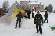 На главной площади города представлена снежная фигура «Голова Святогора» из сказки А.С. Пушкина «Руслан и Людмила». В течение двух дней кипела работа: краски, лопаты и лопатки, шпатели, кадетский задор, - и вот уже всех радует результат творческого труда воспитанников 10 класса (воспитатель Маркелов А.А.) Тетюшской кадетской школы-интерната.