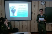 9 января кадеты 9 класса встретились с выпускниками школы предыдущих лет - Теньковским Алексеем, Ефимовым Кириллом, Деревенским Владимиром, Солдаткиным Даниилом и Жировой Александрой. В ходе встречи выпускники рассказали о трудностях, возникших в ходе поступления и в первое время после поступления в ВУЗы. Курсанты Санкт-Петербургской Михайловской артиллерийской академии обратили внимание кадет на необходимость глубокого изучения таких предметов как математика и физика, т.к. без их знания учиться значительно труднее. Курсанты Ставропольского училища погранвойск ФСБ России так же обратили внимание на эти 2 предмета. Никто не исключил значимость физической подготовки. Студентка Казанского Института культуры отметила, что ребятам, обучающимся в военных училищах приходится значительно легче, т.к. на «гражданке» нужно ещё найти и жильё, питаться и одеваться за свой счет.