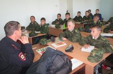 В рамках проведения мероприятий месячника «Экстремизму – нет!» в Тетюшской кадетской школе-интернате 7 сентября в 10 классе проведен урок обществознания на тему «Виды наказания за экстремистскую деятельность» с приглашением старшего инспектора ПДН ОВД Тетюшского района Вячеслава Андреевича Баландина.