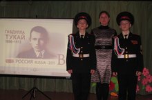 Воспитанники 7 класса Тетюшской кадетской школы-интернат Козин Даниил и Зайнуллин Руслан27 апреля приняли участие в празднике поэзии, посвященном 129-летию со дня рождения великого татарского поэта Габдуллы Тукая. Кадеты прочитали стихотворения «Кышкыкич» и «Родная деревня». Праздник состоялся в МБОУ «Тетюшская татарская средняя общеобразовательная школа», в мероприятии приняли участие учащиеся городских школ и воспитанники детских садов. Праздник завершился исполнением песни «Туган тел» на татарском языке.