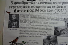 Воспитанники 5-11 классов выпустили «Боевые листки». У каждого класса была своя тематика: «День начала контрнаступления советских войск в битве под Москвой», «День Героев Отечества», День Неизвестного солдата».