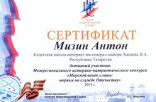 Воспитанники 11 класса МБОУ "Кадетская школа-интернат города Тетюши имени Хапаева В.А." Кудряшов Илья и Мизин Антон стали активными участниками Межрегионального историко-патриотического конкурса "Морской венок: моряки на службе Отечеству".