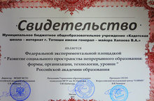 МБОУ "Кадетская школа-интернат города Тетюши имени Хапаева В.А." получила Свидетельство о том, что является Федеральной экспериментальной площадкой.