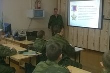 9 декабря в 7 классе МБОУ «Кадетская школа-интернат г. Тетюши имени Хапаева В.А.» классным руководителем Юдиным Ю.А. был проведён классный час посвящённый Дню героев Отечества. В ходе проведения классного часа была представлена презентация, из которой воспитанники узнали, что такой день был утверждён ещё в дни правления Екатерины II, которая в 1769 году учредила высшую награду Орден Святого Георгия Победоносца. Следуя традициям, в 2007 году по инициативе Президента страны Владимира Владимировича Путина было внесено изменение в федеральный закон Российской Федерации «О днях воинской славы и памятных датах России», в соответствии с которым 9 декабря было установлено днем памяти Героев Отечества. Далее в ходе классного часа дети узнали, что к Героям Отечества относятся люди, совершившие подвиги, представленные к званиям: 1. Герой Советского Союза. 2. Герой Социалистического Труда. 3. Герой России. Во времена Советского Союза таким людям вручался высший орден «Орден Ленина» и медаль «Золотая Звезда». В настоящее время вручается только медаль «Золотая Звезда». В дальнейшем было продемонстрировано несколько подвигов людей, представленных к званию Герой России.