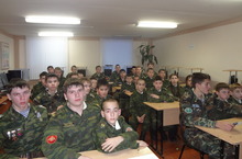 5 декабря в 10 классе состоялся классный час, посвященный Дню Героев Отечества. На классный час были приглашены пятиклассники. В ходе подготовки классного часа старшеклассники под руководством воспитателя Меньшова А.П. собрали материал, проанализировав его, решили создать свой фильм, повествующий о Героях РФ. В ходе презентации фильма, старшеклассники комментировали слайды, рассказывающие о Героях России – это Лебедь А.В., Бурнаев С.А., Шелохвостов И.Ю., Гуров И.В., Уженцев С.В., Долонин В., Кокинаев Ш. Ж. , Шектаев Д.А., Чуркин М. К. В ходе просмотра документального фильма о боях у высоты «3234» кадеты услышали комментарий заместителя командира 9 роты Ткачева, младшего сержанта Огнева и старшего сержанта 9 роты Кузнецова.