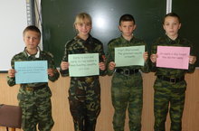 3 сентября 2013 года в МБОУ «Кадетская школа-интернат г.Тетюши имени Хапаева В. А.» учителем английского языка Россеевой Г.А. на уроке в 9 классе была проведена беседа с кадетами на тему «Мы против террора».