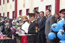 1 сентября. Встретились вновь одноклассники, воспитатели и учителя на торжественной линейке, посвященной началу нового учебного года в МБОУ «Кадетская школа-интернат г. Тетюши имени Хапаева В.А.». Со знаменательным праздником Первого звонка поздравили почетные гости – Глава Тетюшского муниципального района Валерий Сергеевич Чершинцев и Руководитель Департамента по делам госслужащих при Президенте РТ Александр Николаевич Белов. Наиболее отличившиеся в учебе и спорте кадеты были награждены грамотами и дипломами. 28 новобранцев, получив напутствие от «инопланетян», наблюдающих за нашей школой из далеких Галактик, и дав клятву кадетскому «Коту ученому», влились в ряды воспитанников кадетской школы-интерната. Ни дождь, ни ветер не смогли омрачить праздничное настроение детей. Прозвучавшая песня о школе и вальс, исполненные Гайнутдиновой Эльвиной, Авериным Максимом и Нугмановой Алиной получили заслуженные аплодисменты. После подачи звонка ученицей 5 класса Марченко Кариной и вице-сержантом воспитанником 11 класса Чайкиным Дмитрием линейка была завершена прохождением торжественным маршем всего личного состава школы-интерната. Затем в каждом классе состоялись уроки Универсиады.