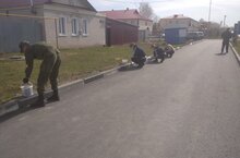Субботники продолжаются. После приведения в порядок газонов, сегодня кадеты занимались покраской бордюров на улице Воробьева.