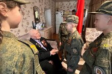 Кадеты-волонтеры Тетюшской кадетской школы-интерната накануне великого праздника Дня Победы навестили ветерана Великой Отечественной войны Ведьгаева Илью Егоровича, чтобы поздравить с Днем Победы. Нашему ветерану 97 лет. Кадеты выразили огромную благодарность за мир и Победу, пожелали Илье Егоровичу еще многих спокойных лет жизни, радости, любви детей и внуков и вручили поздравительную открытку. Затем попросили подойти к окну: в честь ветерана кадеты прошли мимо окон дома торжественным маршем с отданием воинского приветствия, исполнили строевую песню.