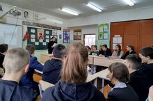 В рамках профориентационной работы с учащимися школы провели беседу студенты "Алабуга Политех". В ходе беседы познакомили ребят с современным учебным комплексом, инновационными лабораториями и востребованными специальностями.