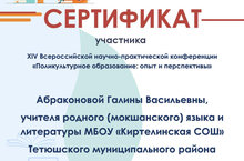 29 – 30 ноября 2021 года проходит ХIV Всероссийская научно-практическая конференция «Поликультурное образование: опыт и перспективы». Целью конференции является обсуждение актуальных вопросов развития поликультурного образовательного пространства в полиэтнической России, проблем культурно-исторического наследия, важнейшим из компонентов которого является этническая педагогика с ее прогрессивными богатейшими традициями и опытом воспитания подрастающего поколения; создание условий для развития родных языков и культур, удовлетворения этнокультурных образовательных потребностей в образовательной среде. Особое место занимают вопросы, связанные с разработкой содержания и технологий формирования этнотолерантности как нравственной основы личности обучающегося в современной школе. На всех секциях обсуждаются вопросы привлечения внимания общества к литературе и чтению, стимулирования интереса россиян к печатному слову, к книгам. Учитель родного (мокшанского) языка и литературы, Абраконова Галина Васильевна, приняла участие в данной конференции и выступила с докладом "Поликультурное воспитание на уроках родной литературы".