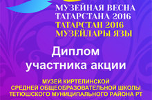 Историко-краеведческий музей мордовской культуры Киртелинской средней школы с 21 по 26 апреля принимал активное участие в третьей республиканской акции «Музейная весна Татарстана - 2016» и награжден Дипломом участника акции