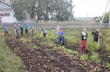 Учащиеся школы с 1 по 11 класс вместе с учителями и техперсоналом школы убрали картофель с пришкольного участка.