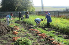 Продолжаются работы на пришкольном участке. Учащиеся совместно с учителем технологии Никушиной Т.В. убрали морковь.