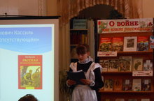 2 февраля в Детской библиотеке проводился районный этап республиканского конкурса чтецов «Во имя мира на Земле», посвященного 70-летию Победы в Великой Отечественной войне. От нашей школы в конкурсе приняли участие Романова Анастасия, Абраконов Никита, Родионова Анна и Одаряева Ксения. Благодарственным письмом награждена учащаяся 7 класса Одаряева Ксения.